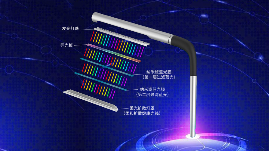 納米多層積層護眼台燈濾藍光膜,讓燈光光線更健康。